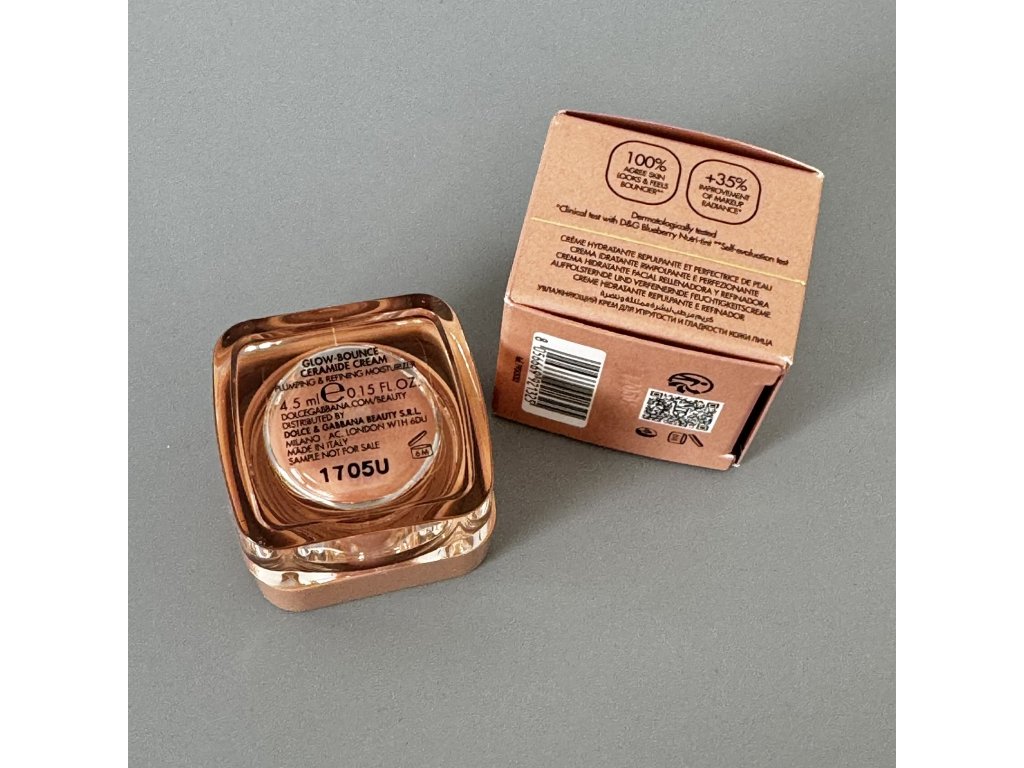 Luxusní pleťový krém Dolce & Gabbana Glow-Bounce Ceramide Cream intenzivně hydratuje pleť, podporuje její pružnost a dodává jí přirozený zdravý jas. Díky obsahu ceramidů pomáhá posilovat kožní bariéru, uzamyká vlhkost v pleti a zanechává ji viditelně hladší, jemnější a plnější.